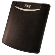 Buitenwand stekkerdoos t.b.v. buitengas aansluiting met magneetsluiting en functie pictogram, zeer beperkte opbouwdikte.