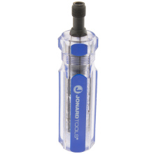 Is de kabel stug of, als je buiten werkt, koud? Aan de achterkant zit een zeer handig hulpmiddel waarmee je de buitenmantel van de coaxkabel verruimt. Dit 'uitwaaierende' uiteinde van het gereedschap vergemakkelijkt de uitzetting van de kabel waardoor de "F"-connectoren gemakkelijker kunnen worden ingebracht. Ook bij koud weer!