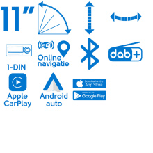 Het supergrote 11” WXGA-touchscreen-display heeft een resolutie van 1280 x 720px en bevat meer dan 2,7miljoen pixel elementen - waardoor pictogrammen, menu's en visuele inhoud uiterst scherp en levendig zijn op het dashboard. Het scherm is bevestigd aan een verstelbare bevestiging die is verbonden met het radioslot van het voertuig en laat een vrije 1DIN-pocket er onder vrij voor het opbergen van kleinere items zoals papieren/pennen, enz.
