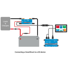 Met de SmartShunt 300A/50mV is geen uitleesmonitor meer nodig. De monitorfuncties zijn middels BlueTooth communicatie direct beschikbaar op een smartphone of tablet voor het bewaken en instellen met de VictronConnect App. Met een VE.Direct kabel kan de shunt worden verbonden met en GX Device.