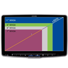 Het supergrote 11” WXGA-touchscreen-display heeft een resolutie van 1280 x 720px en bevat meer dan 2,7miljoen pixel elementen - waardoor pictogrammen, menu's en visuele inhoud uiterst scherp en levendig zijn op het dashboard. Het scherm is bevestigd aan een verstelbare bevestiging die is verbonden met het radioslot van het voertuig en laat een vrije 1DIN-pocket er onder vrij voor het opbergen van kleinere items zoals papieren/pennen, enz.