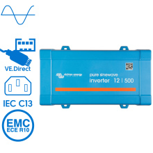 De Phoenix 12/500 230V VE.Direct IEC is een krachtige zuivere sinusgolfomvormer met een vermogen van 500VA (400W) in een enkele compacte behuizing. Deze Phoenix is voorzien van een IEC C13 (female) contactdoos, en wordt geleverd zonder de benodigde 10mm² kabels.