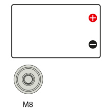 Plaats de Aces lithium accu’s nooit op hun zijkant, maar altijd op de standaard wijze rechtop, met hun bodem op de vloer.