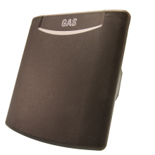 Buitenwand stekkerdoos t.b.v. buitengas aansluiting met magneetsluiting en functie pictogram, zeer beperkte opbouwdikte.