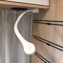 Aan/Uit knop op bovenkant lampje. Deze lamp zit o.a. in Adria Aviva en Bürstner.