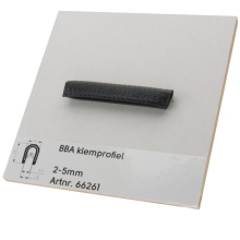 Met dit profiel werk je bijvoorbeeld metalen- of meubelplaat randen netjes af. Het profiel is zeer eenvoudig te monteren. Wordt geklemd door een geïntegreerd metalen profiel. Het BBA klemprofiel wordt veel gebruikt bij lijmramen.