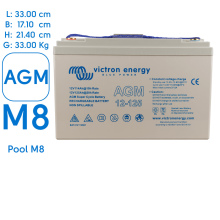 Victron AGM 12V 125Ah Super Cycle accu voorzien van een M8 inzet aansluiting.
