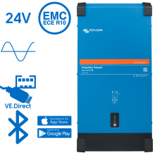 Met deze zuivere sinus DC/AC omvormer wordt 24VDC omgevormd naar 230VAC, voor apparaten met continue vermogen van 4000W (piekvermogen 10000W). De omvormer is voorzien van geïntegreerde Bluetooth en een VE.Direct-communicatiepoort.