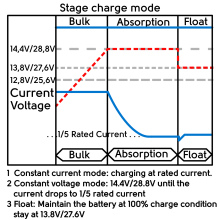 2. MPPT stopt met laden, wanneer er te weinig zonlicht is, dan schakelt hij over naar AC laden.