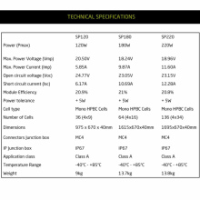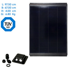 De zonnepanelen worden compleet geleverd met dak doorvoer, wartels, 5 meter gemonteerde voedingskabels en MC4 connectoren maar zonder regelaar.