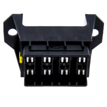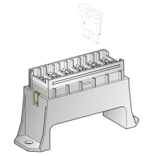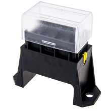 Schroefbare zekeringhouder voor 4 standaard steekzekeringen. De vlaksteker aansluiting 6,3mm is gepositioneerd aan de onderkant. Dit model wordt geleverd met deksel.