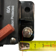 De BBA techniek Circuit Breaker 150A, voor 12-48 volt DC systemen met handmatige reset schakelaar, voorkomt de gevolgen van kortsluiting of overbelasting in een gelijkstroom circuit.
