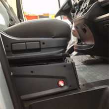 Door de knop naar OUT te draaien kun je de sleutel verwijderen. Eventueel ook in onderkant stoel te monteren, zie foto’s.