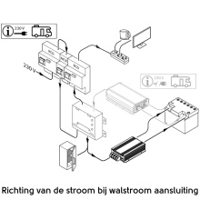 Tevens is de Priority Switch voorzien van een uitgang waar alleen spanning op staat bij het gebruik van walstroom. Deze kan gebruikt worden voor apparaten die niet op de alternatieve bron aangesloten mogen worden. Denk hierbij aan de koelkast en de accu lader.