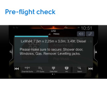 De meeste schade aan campers komt omdat het voertuig niet volledig voorbereid was voor de reis. Alpine's LIN Bus-adapter op het scherm, om de draadloze oplader van Fiat Ducato te behouden, kan volledig worden aangepast aan jouw voertuig en herinnert je eraan, voordat je gaat rijden, om te controleren of het gas is uitgeschakeld, alle tafels en deuren zijn vergrendeld, satellietantennes zijn ingetrokken, enz.
