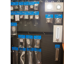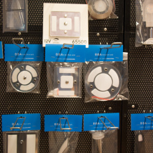Wij monteren dan het artikel op het paneel en voorzien het aan de onderzijde van een sticker met daarop de juiste iconen/omschrijving (12V, dimbaar en/of USB) en het artikelnummer.