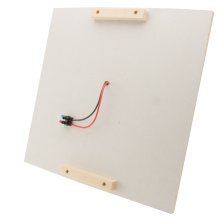 Aan de achterzijde van het paneel wordt aan 2 kanten een latje van 10cm lang gemonteerd en er wordt (bij LED verlichting) een kroonsteen gemonteerd waar wij de kabeltjes van de armatuur in bevestigen.