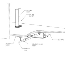 Compleet ruimtebesparende elektrische (12V/ 230V - 500/1000/2000W) of gas (30Mbar-2,0Kw) onderbouw kachel met display, rozetten, afvoer en inlaat.