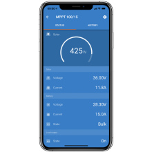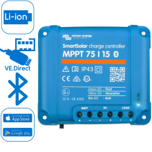 Victron SmartSolar MPPT 75/15 12/24V is een zonnelader voor 12V of 24V systemen (autoselect). Het maximaal nominaal PV-vermogen dat bij een 12V systeemspanning door de zonnelader wordt doorgegeven is 220W, en bij een 24V systeemspanning is dat 440W. De maximale PV-nullast-spanning van deze zonnelader is 75V. De SmartSolar zonne-laadregelaars hebben een programmeerbaar acculaad-algoritme, en standaard Bluetooth Smart ingebouwd om de zonnelader te kunnen instellen en zonneopbrengst te kunnen monitoren.