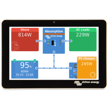 Het touchscreen van vijf inch geeft een direct overzicht van uw systeem en maakt het mogelijk om instellingen in een oogwenk aan te passen. Eenvoudig verbonden met de Cerbo GX met één kabel, het superslanke waterdichte ontwerp, de boven monteerbare installatie en de eenvoudige installatie zorgen voor veel flexibiliteit bij het creëren van een helder en schoon dashboard.
